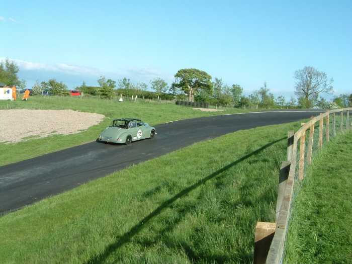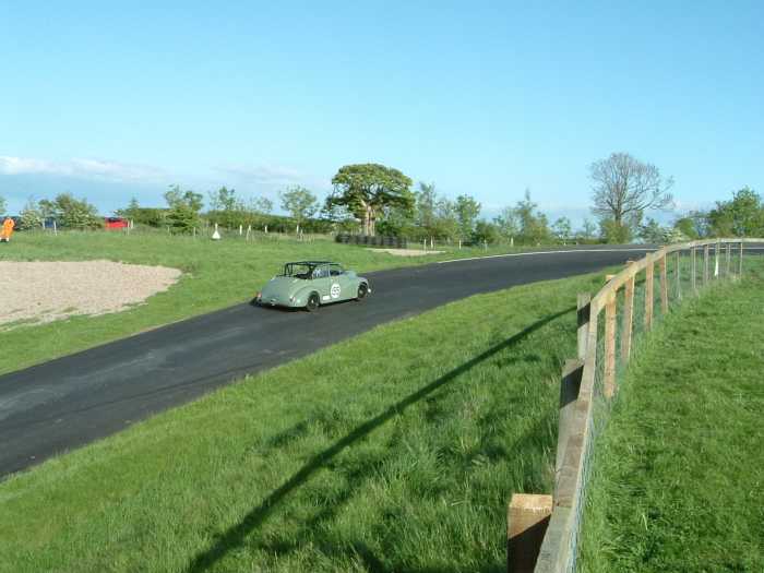 Farmhouse Bend......75mph, time....73.47 secs. 2nd Practice run: 1st Timed Run: Notes: I tried to concentrate on the lines on this run and get the power down early. The time was lost in the middle of the track (Country, Willow, Orchard and Farmhouse). I was getting understeer in the Esses and Chippy`s. 2nd Timed Run: Notes: Due to the understeer experienced on the previous run I softened the front anti roll bar (moved the drop link approx. 30mm along the bar). The slow time on this run is due to me going off the track at Country Corner. I braked a bit later and did not make the corner. On reflection if I had come off the brakes and turned in I am sure I would have got around the corner. After this incident I then drove up the track quite steadily. However the car felt much better (before I went off), with less understeer yet still putting the power down well. 3rd Timed Run Notes: I softened the front bar by moving the drop link another 20mm along the bar to its softest setting. I was pleased with the time though slightly disappointed not to get under 70 seconds. The car had less understeer, but is still putting the power down well out of corners. Turn in is still good. As the grip is increased at the front (by softening the bar) the likelihood of power down oversteer increases, but I am still able to accelerate hard out of the corners. Summary: A very satisfactory first visit to Harewood. I was