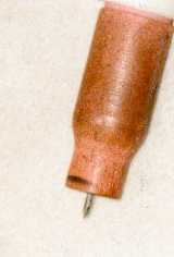 | The Tig torch, earth clamp and welding rod. | Close up of the torch showing the electrode. | ||||