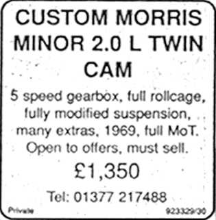 in the auto trader to sell my Minor.